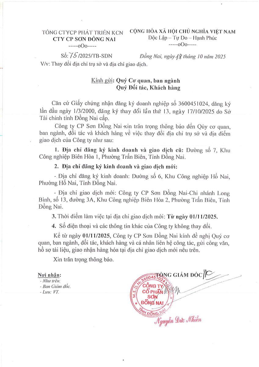 Thông Báo Thay Đổi Địa Chỉ Công Ty